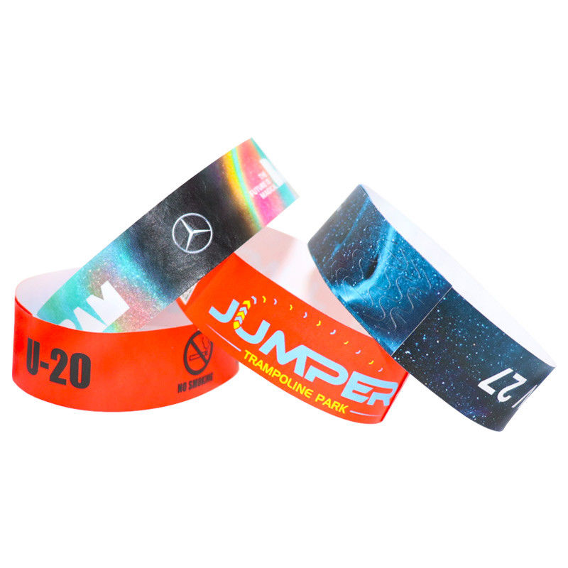 Τα βραχιόλια Tyvek είναι διαθέσιμα σε διάφορα χρώματα, μεγέθη και σχέδια και μπορούν να προσαρμοστούν σύμφωνα με τις απαιτήσεις σας.και μπορεί να τυπωθεί με λογότυπα και σχέδια για να κάνει το γεγονός σας να ξεχωρίζειΤα βραχιόλια μας είναι πιστοποιημένα από την SGS και έρχονται σε ελάχιστες ποσότητες παραγγελίας 1000pcs. Είναι συσκευασμένα σε opp bags ή CTN και παραδίδονται εντός 1-3 ημερών.